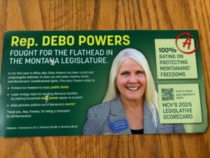 It was a surprise to Rep Powers when she opened her mailbox and found a mailer giving her an A rating based on her votes in the legislature. The mailer was sent by Montana Conservation Voters who track how legislators vote in the session.